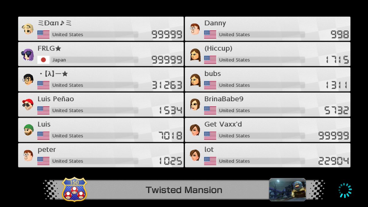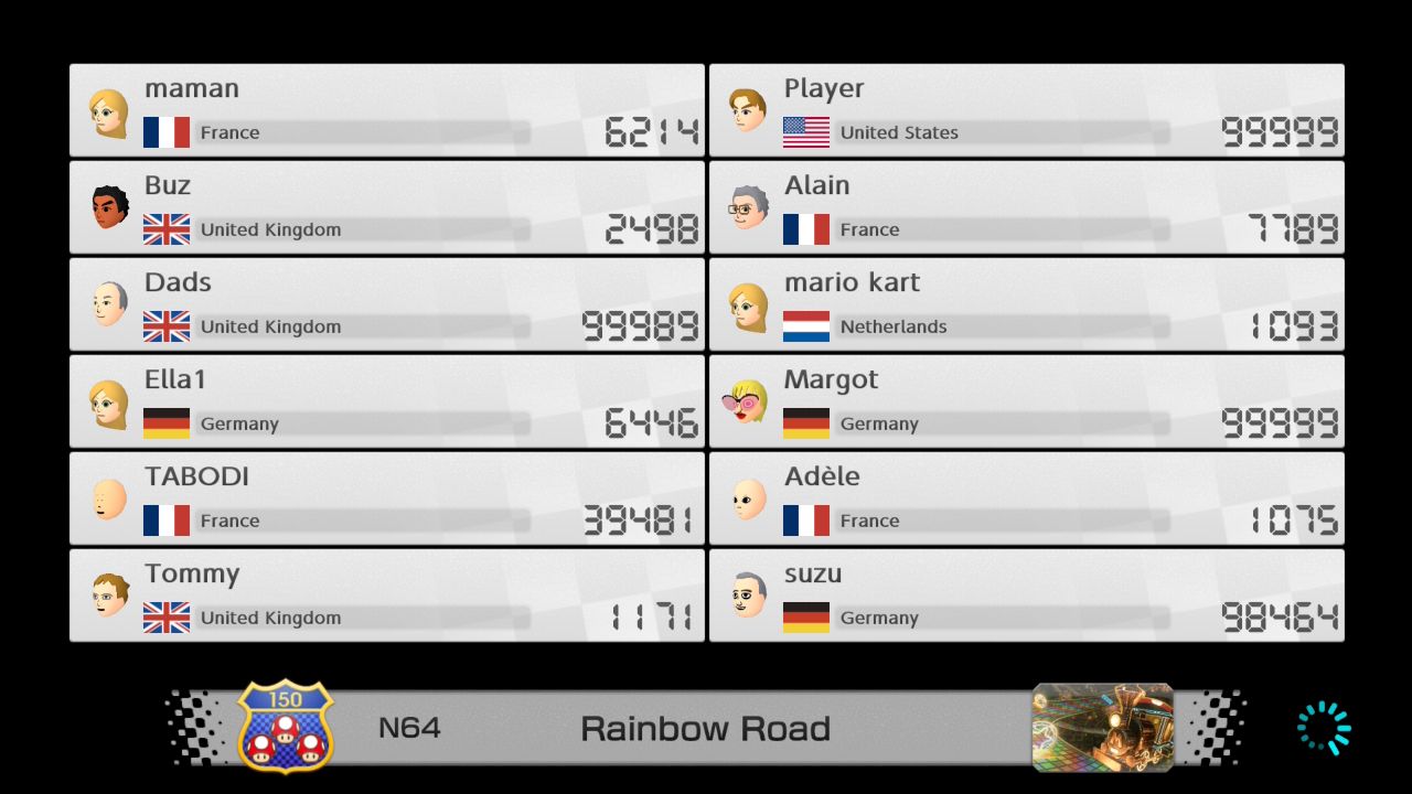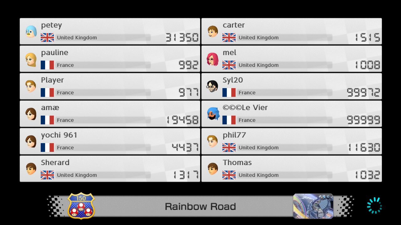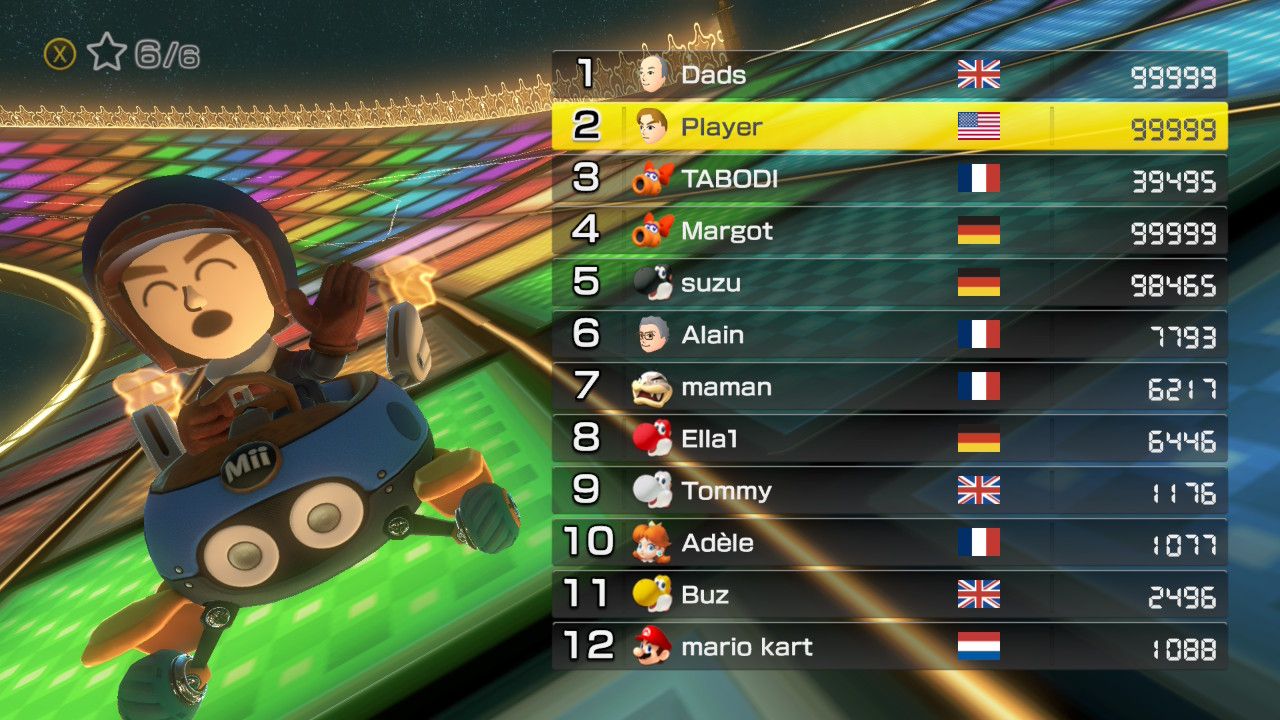Mario Kart 8 Deluxe max VR list