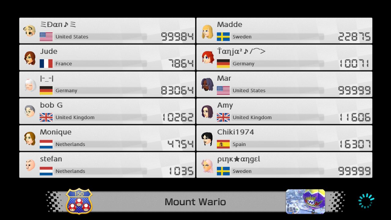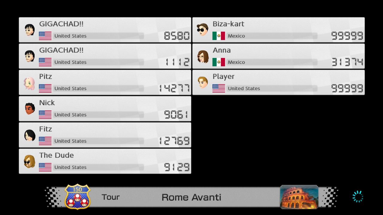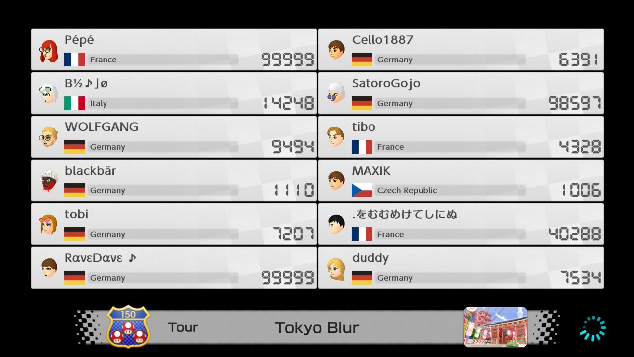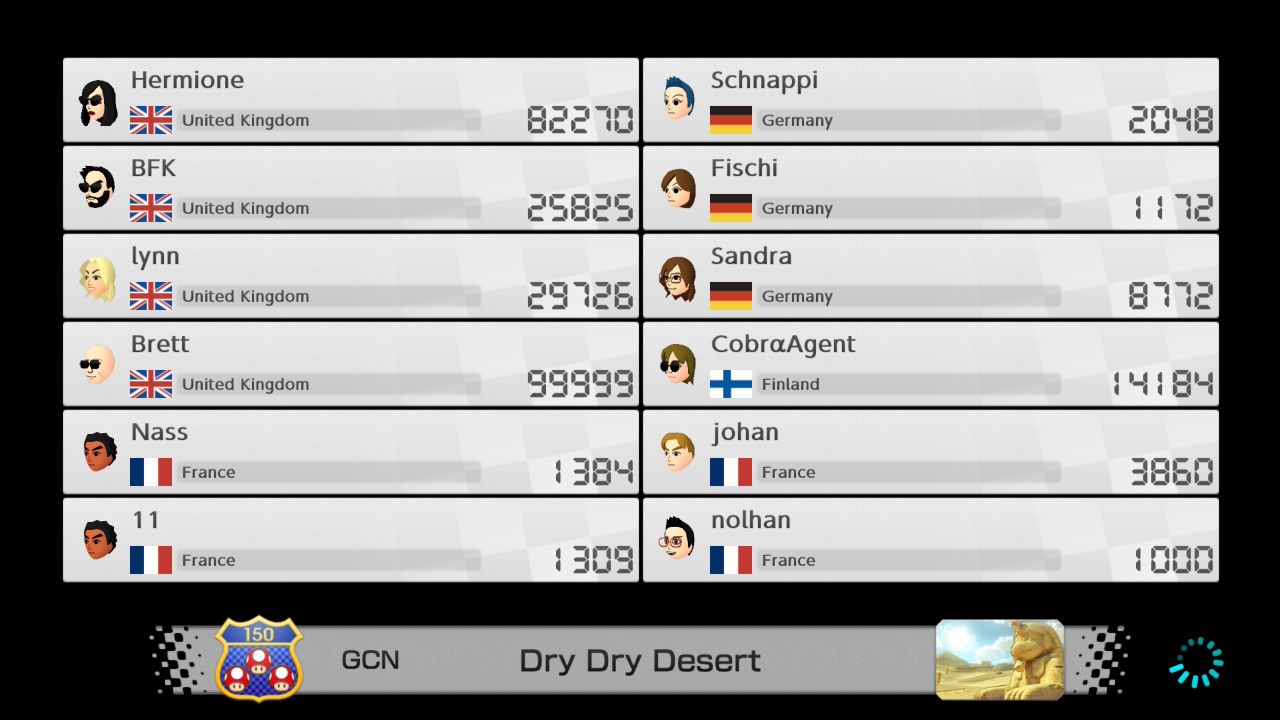 Mario Kart 8 Deluxe max VR list